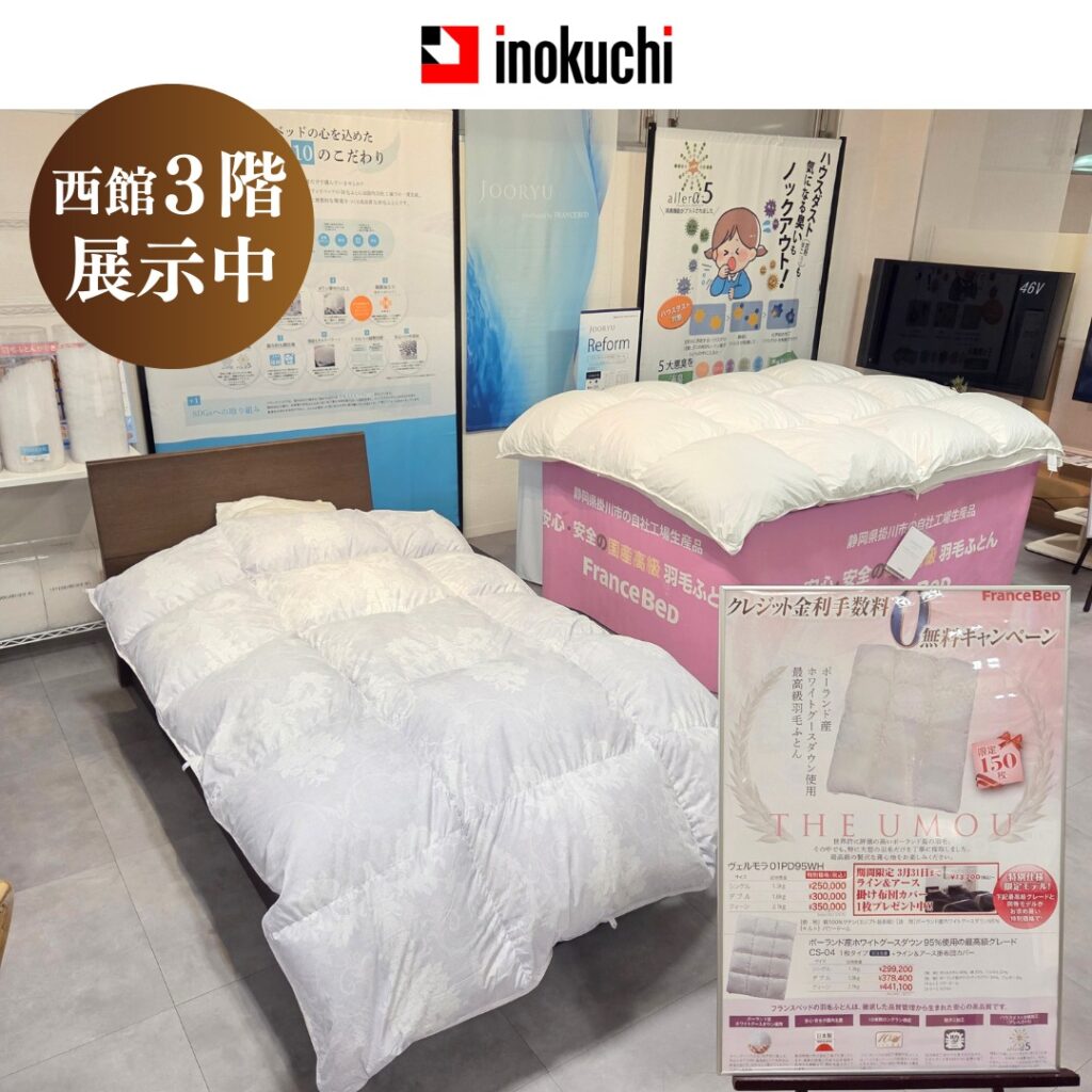 いのくち家具では羽毛布団のキャンペーンを開催しております。