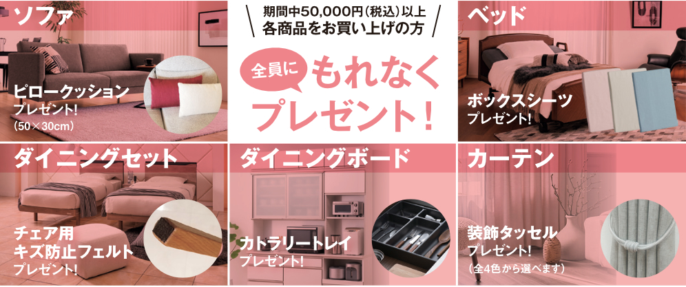 税込50,000円以上対象商品お買い上げで、全員にもれなくプレゼント!