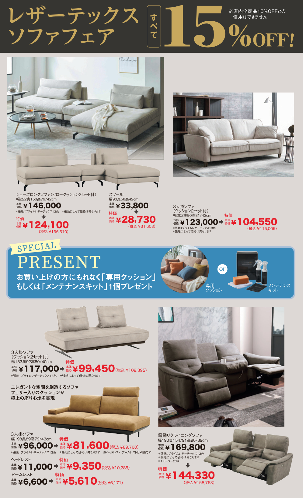 いま話題のレザーテックスを使用したソファが感謝祭価格にて!