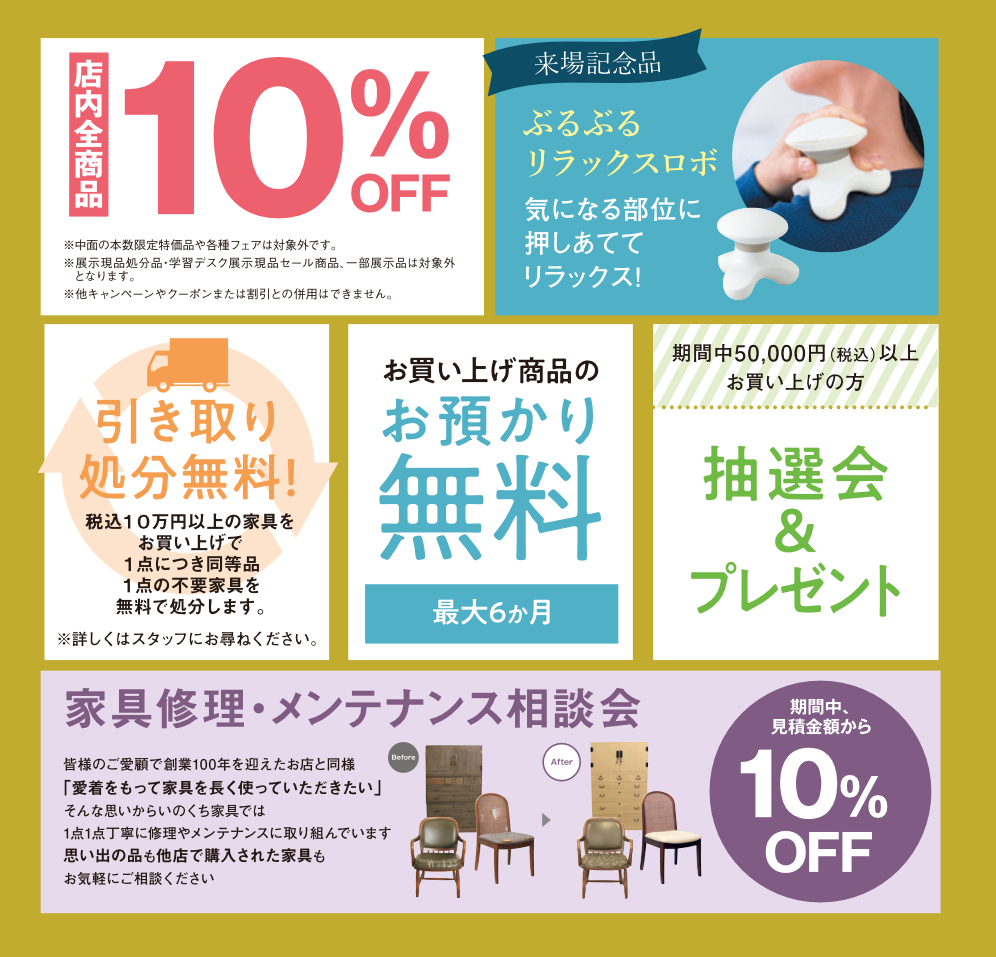 | 特典⑤ | 家具修理・メンテナンス相談会開催! |