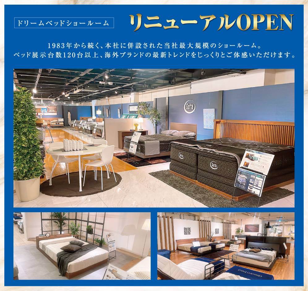 1983年から続く、本社に併設されたドリームベッド最大規模のショールーム。