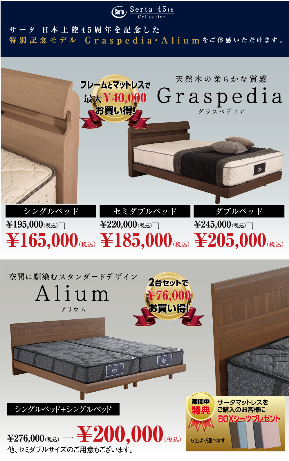 サータ日本上陸45週y年を記念した特別モデルをご体感頂けます。