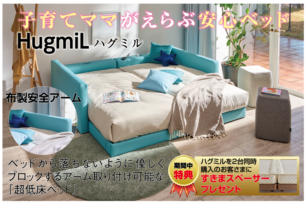 ベッドから落ちないように優しくブロックするアーム取付可能な「超低床ベッド」
