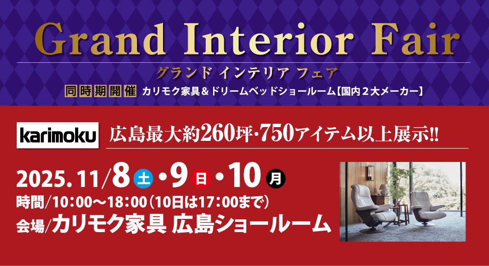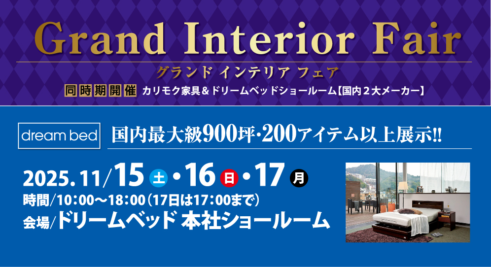 2週間にわたり、カリモク家具とドリームベッドの国内2大メーカーのショールームにて特別販売会を開催致します。