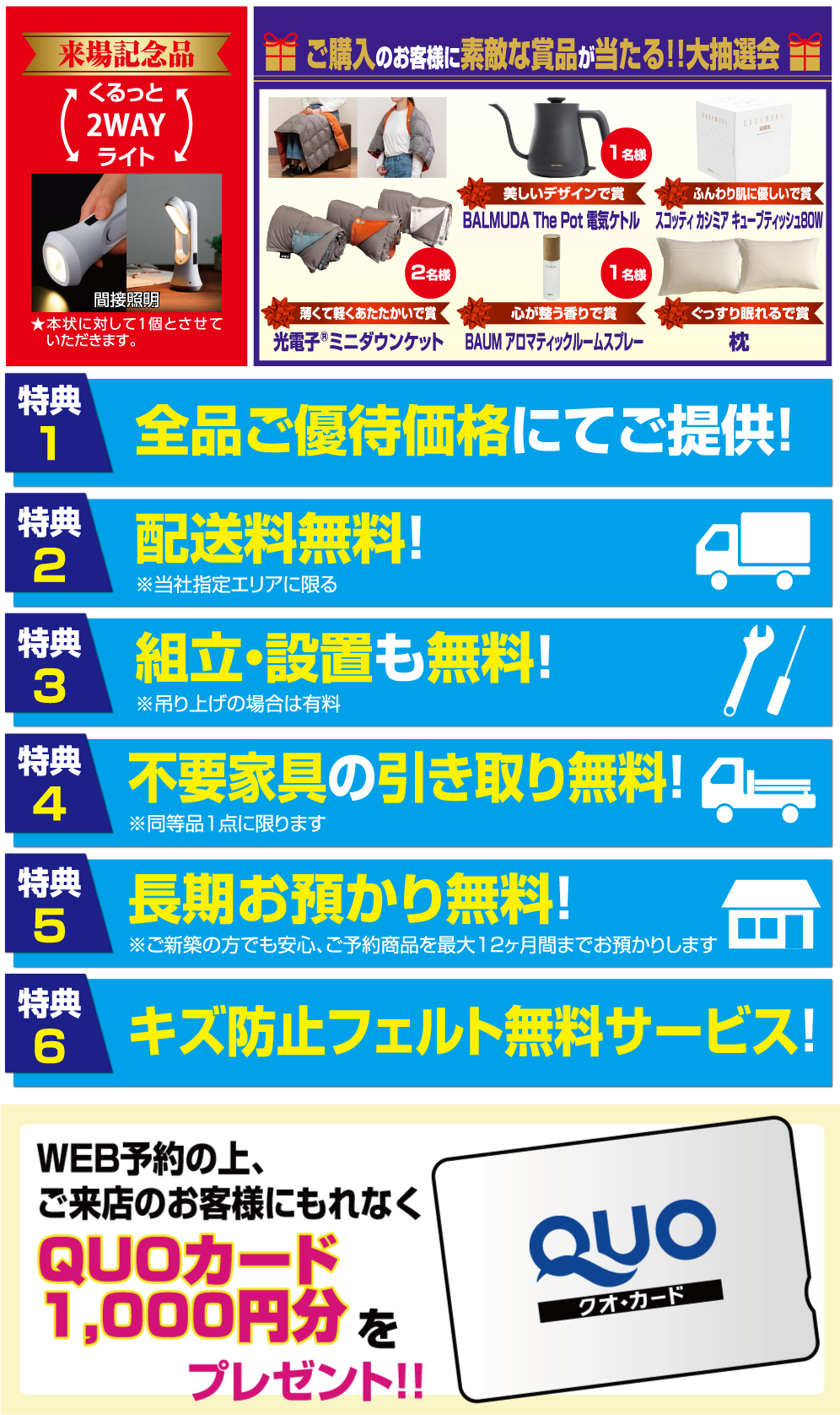 ご来場予約特典 | QUOカード1,000円分をプレゼント! |