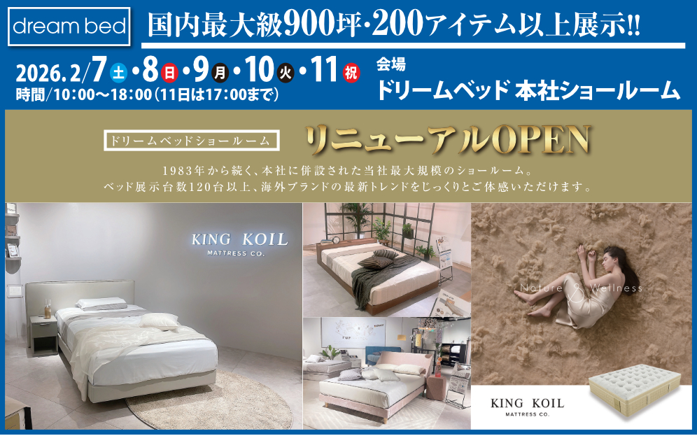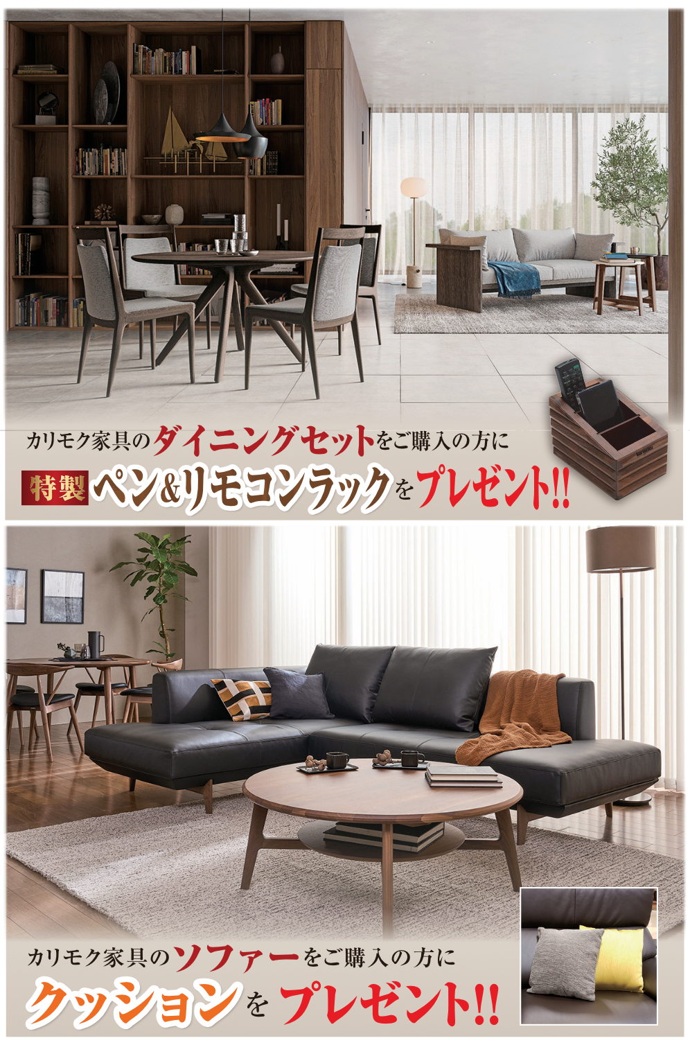 ドリームベッドとカリモクの2大家具メーカーのショールームにて同時期開催致します。