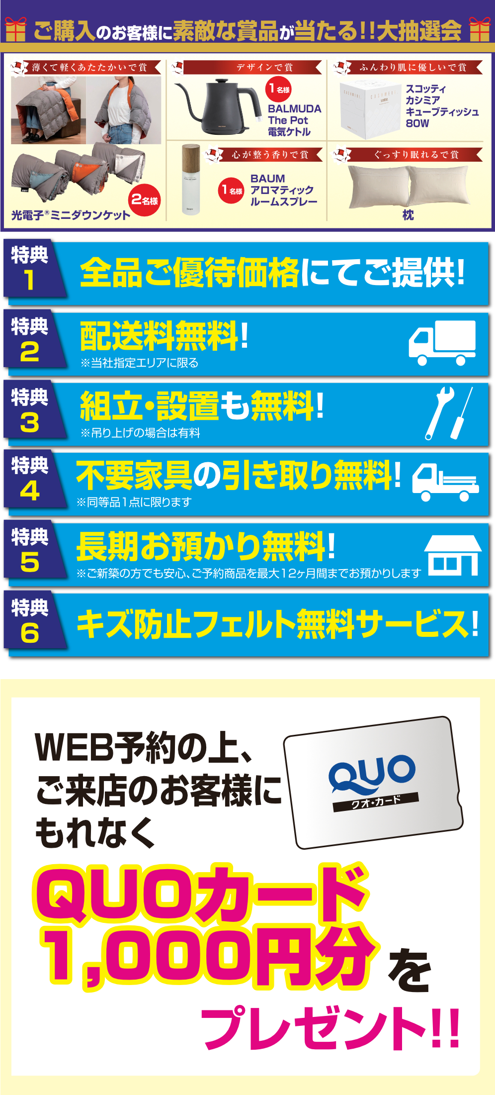| ご成約特典 | 素敵な商品があたる大抽選会! |