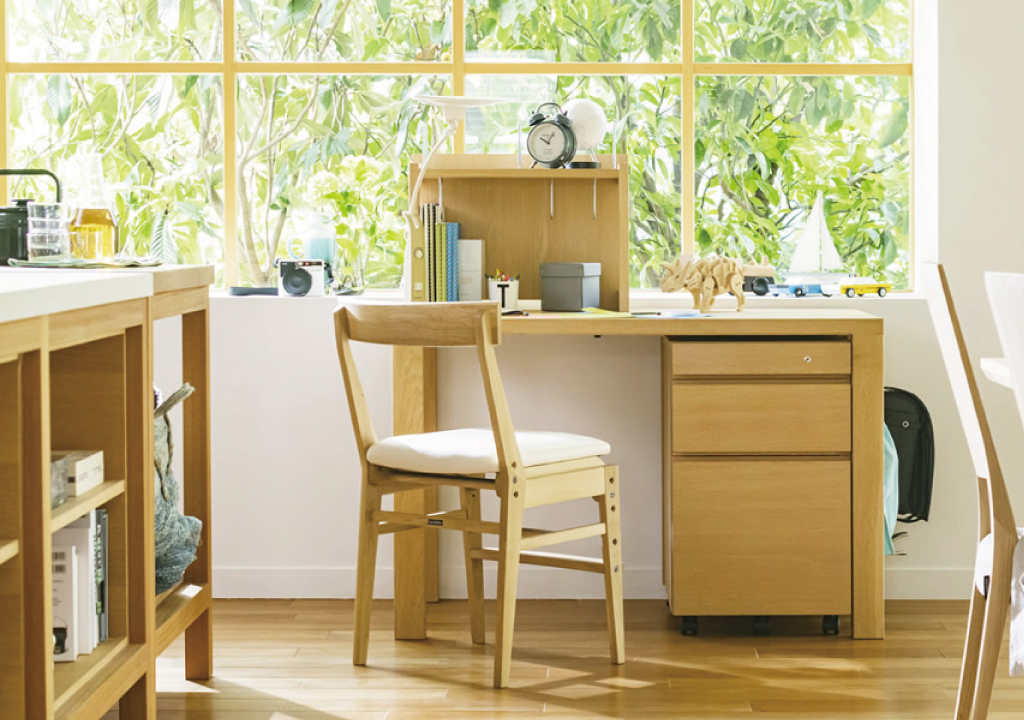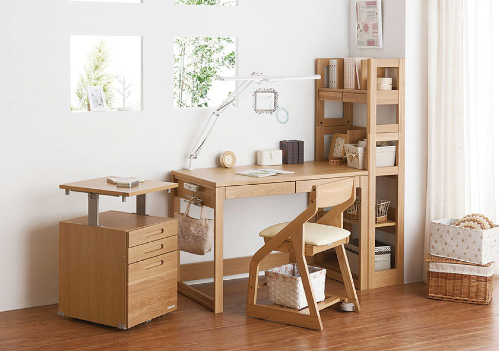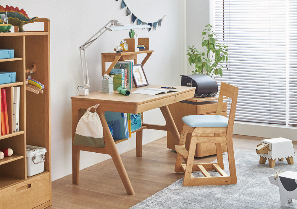 浜本工芸は、国産材を使用した安全設計と無垢材の温もりが魅力。耐久性に優れ、シンプルで飽きのこないデザインは長く使える安心感があります。細部まで丁寧に仕上げられた品質は、世代を超えて愛される理由のひとつ。お子さまの成長に寄り添うデスクをお探しの方におすすめです。
