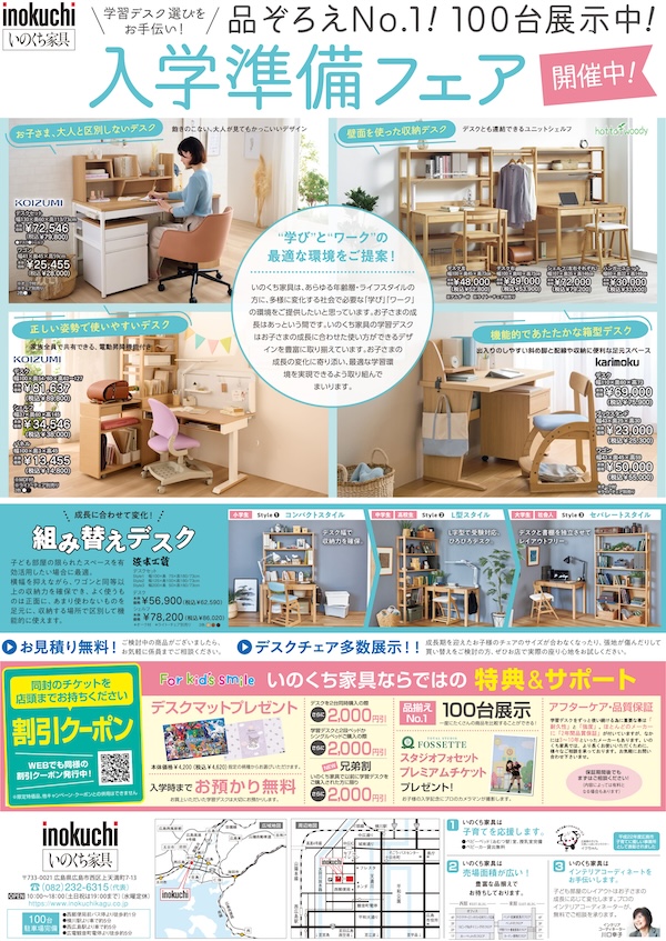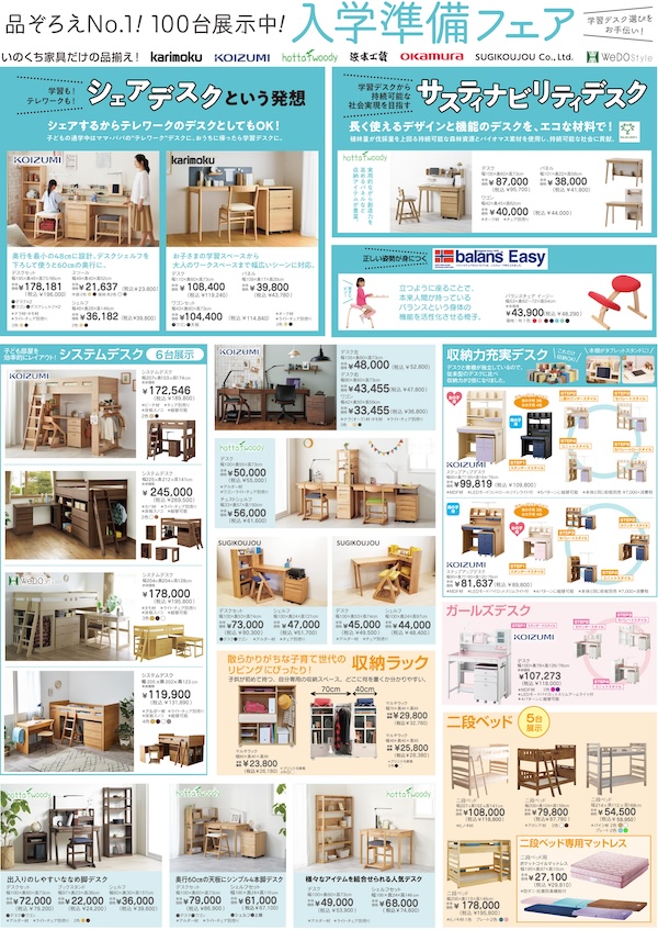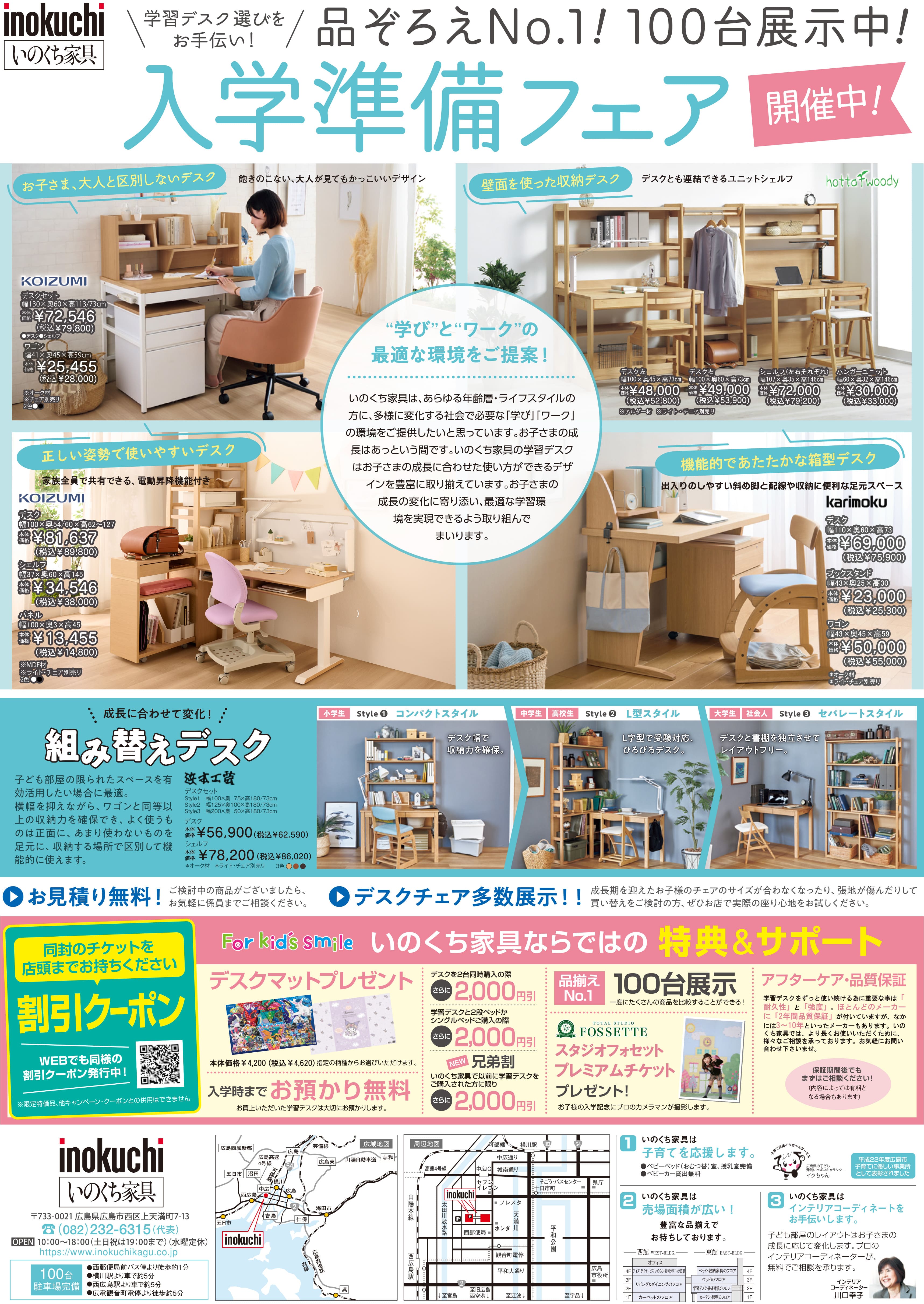 ※クーポン券の利用について、学習デスク・ランドセル展示品・在庫処分品は対象外になります。